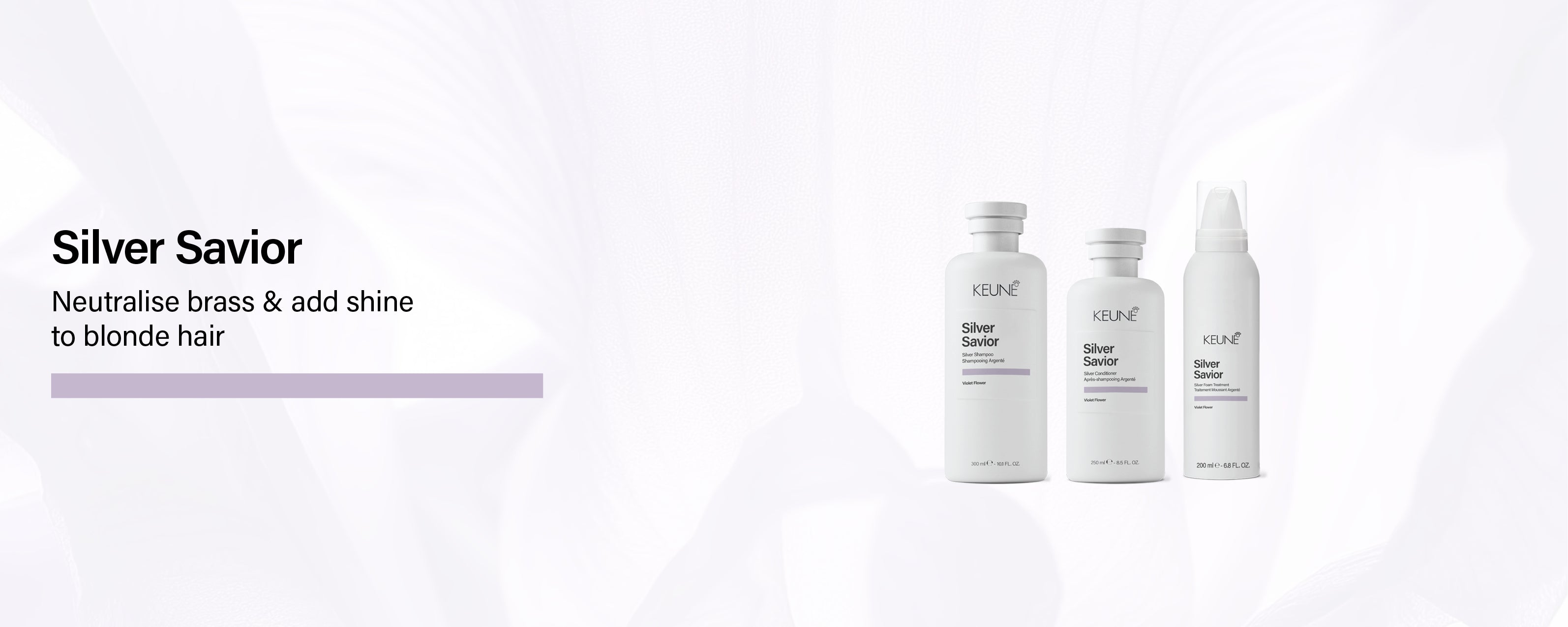 Meet Silver Savior, our violet-infused care routine for powerful neutralising of brass and restoring shine.